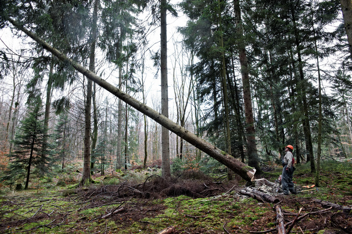 Pendant deux semaines, l'objectif était de couper et mobiliser 2000m3 d'épicéas scolyté (afin d'en limiter la prolifération), qui seront ensuite repris au câble mât pour acheminer ces grumes port de camion.
